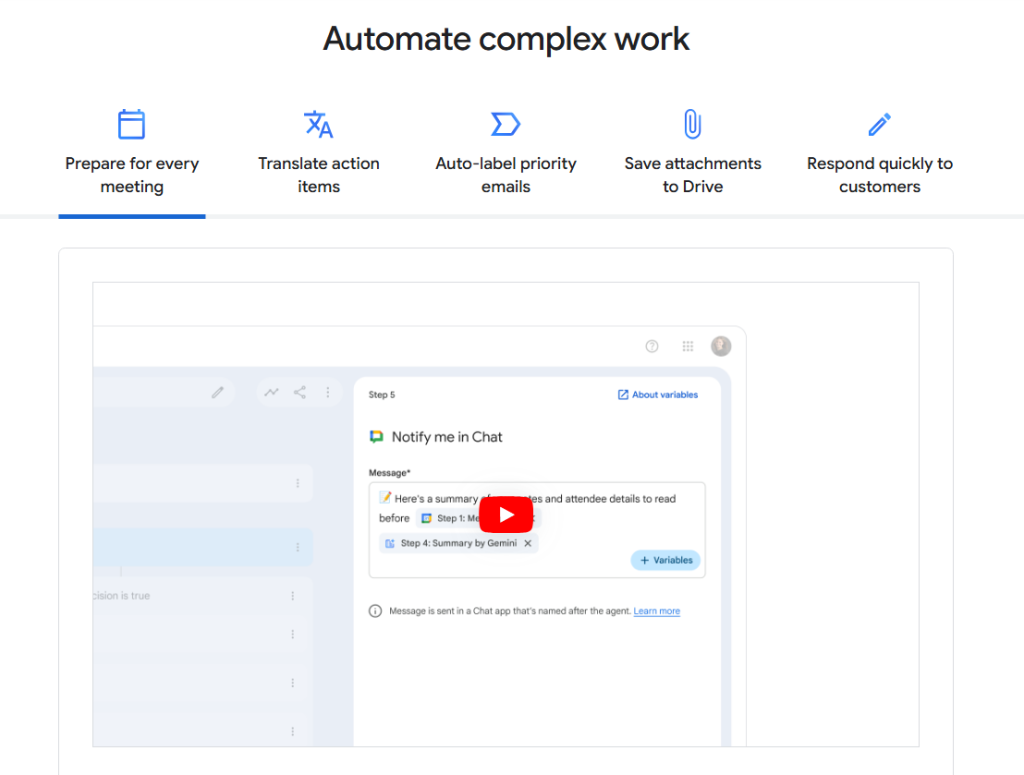Điểm độc đáo của Workspace Studio là khả năng trích xuất chi tiết từ email và tập tin đính kèm, chẳng hạn như số hoá đơn, mục hành động, hoặc dữ liệu quan trọng khác. Điều này cho phép agent hoạt động như một trợ lý thực sự, không chỉ là một công cụ tự động hoá cơ bản.